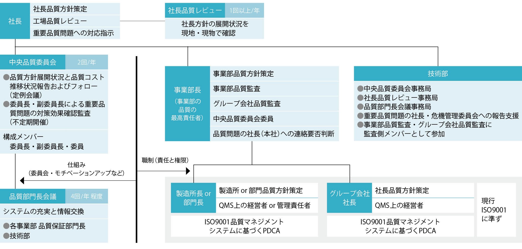 We aim to contribute to society by providing safe, high-quality products and services that always satisfy our customers, while adhering to the principle of putting the customer first and continuously improving the effectiveness of our QMS*.